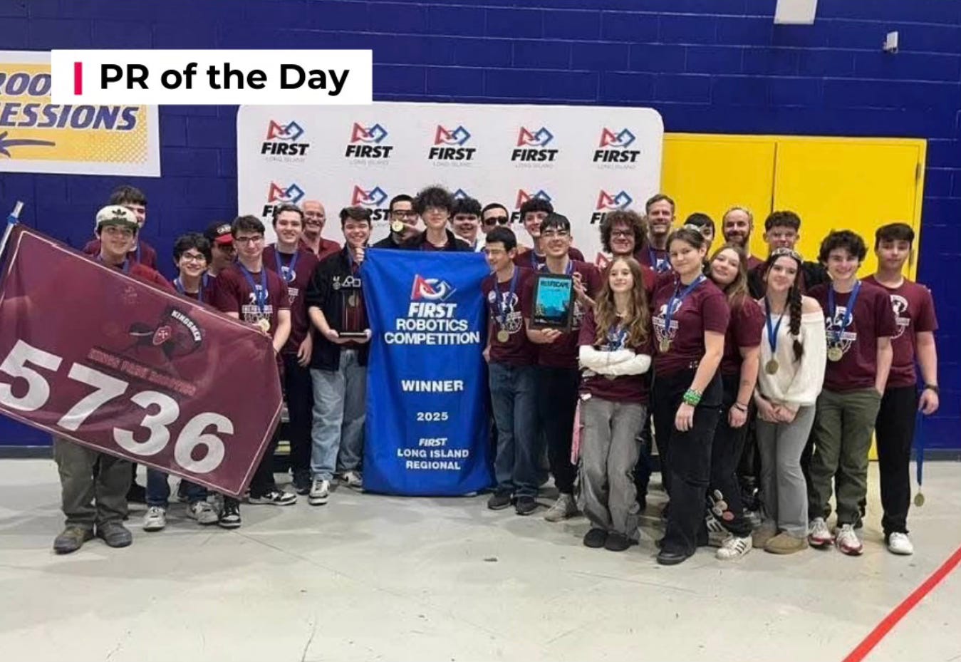 🤖 Kings Park Robotics Booster Association: Has solidified its status as a powerhouse in competitive robotics, securing a 1st place victory at the FIRST Long Island Regional event at Hofstra University on March 22, 2025. After three intense days of competition, Team 5736 emerged as the top-ranked team out of 49 competitors, continuing their tradition of excellence.